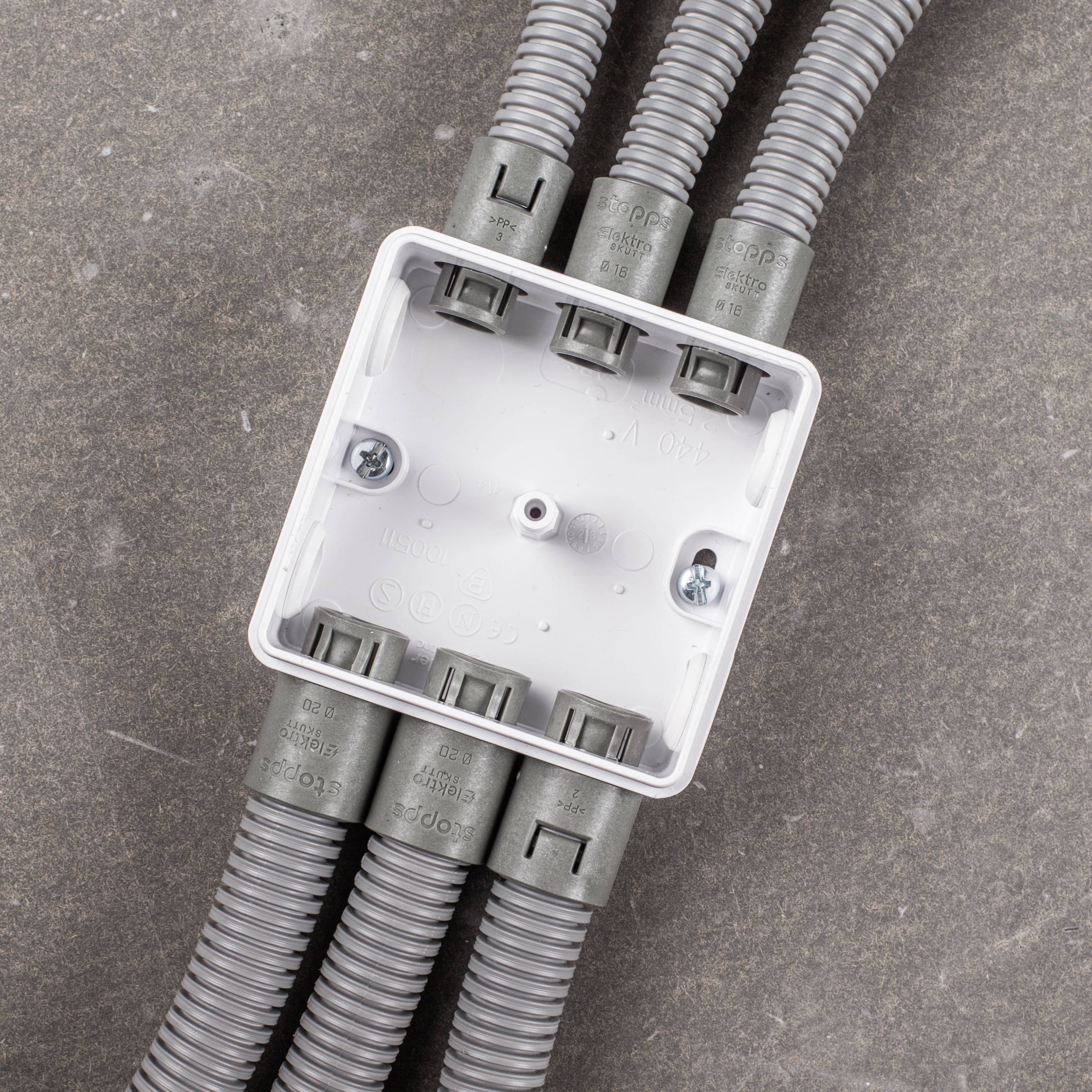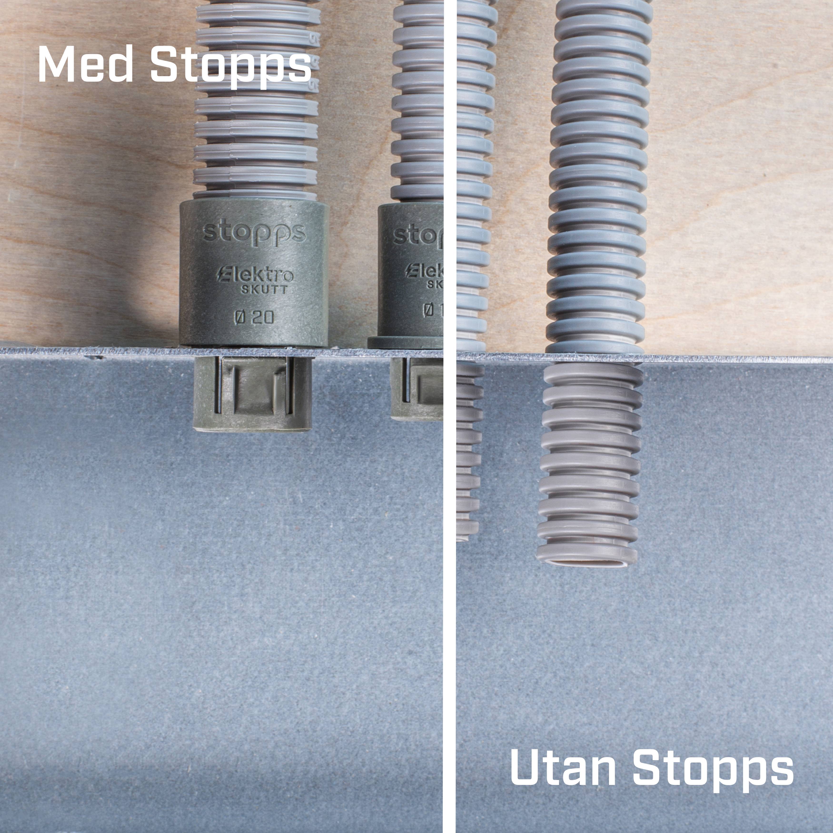 Stopps är en produkt som ger ett snyggt och säkert avslut för kapslade ledare i elcentraler och dosor.
